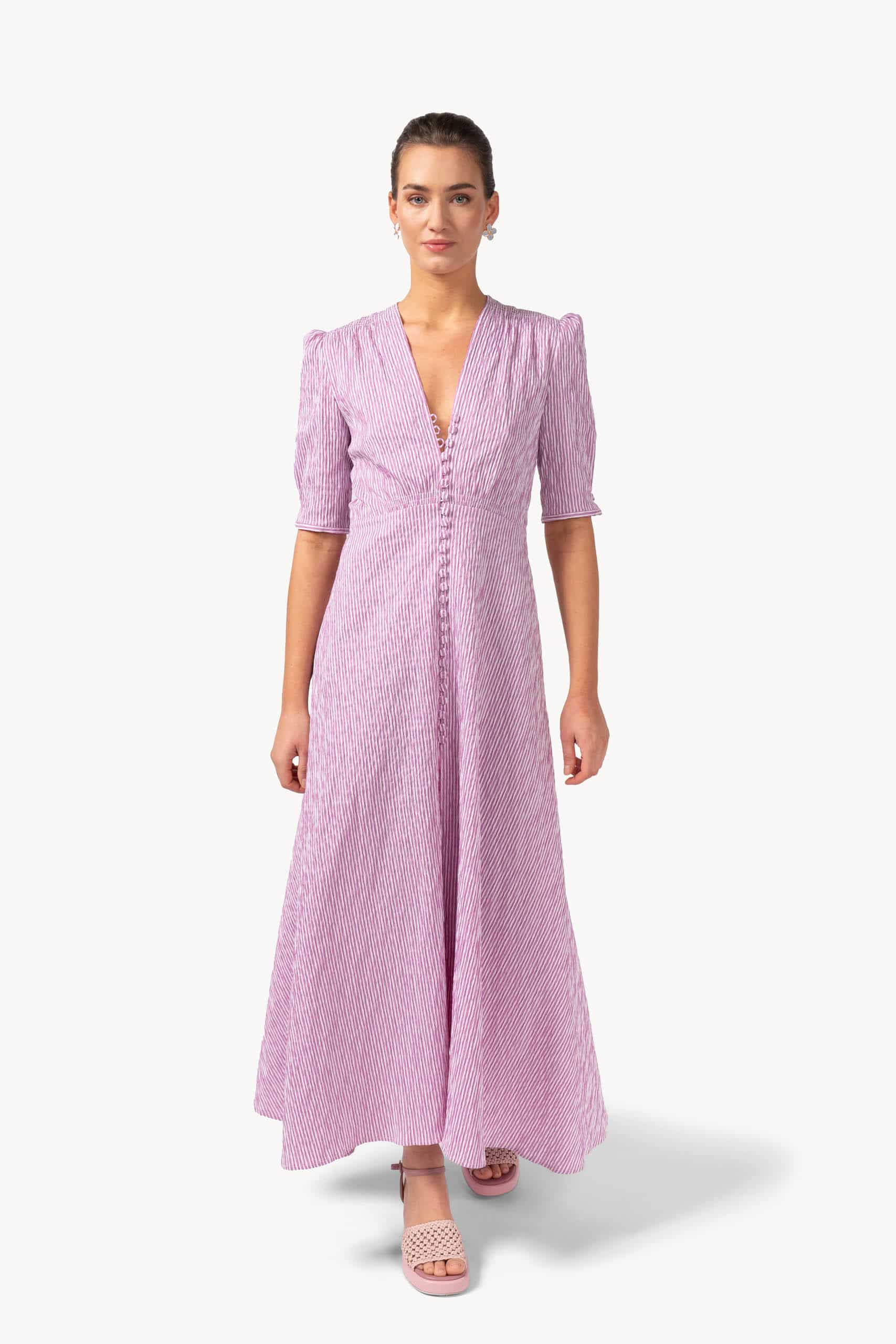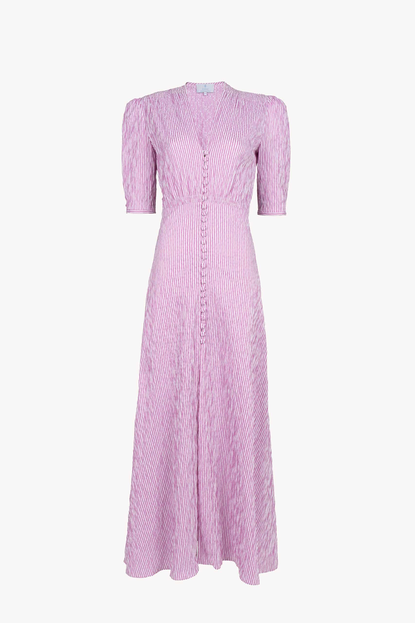 4.500,00€Layers of cascading ruffles create a romantic, flowing silhouette in this pink gown. The soft drape and floor-length design move gracefully with every step, while delicate detailing along the neckline and shoulders adds a feminine, whimsical touch. Product Details • Dry Clean Only • Made in Italy