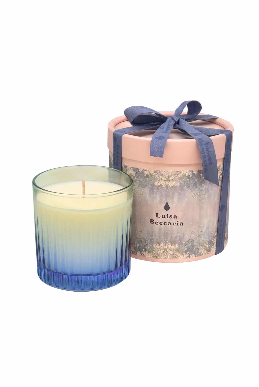 Luisa Beccaria Scented Candle — Orange Blossom Immerse your home in the delicate and poetic atmosphere of Organza Blossom, the signature Luisa Beccaria fragrance. Housed in our iconic faceted glass vessel, featuring a vibrant gradient from soft green to deep blue, this scented candle casts a refined, luminous glow in…