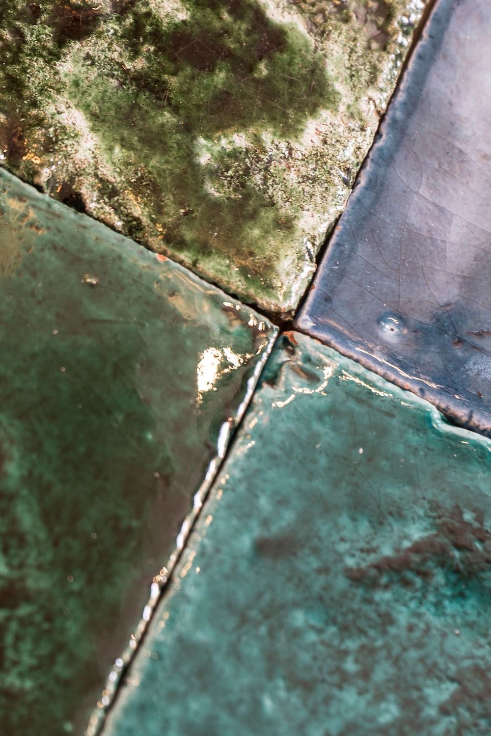 These ceramics are composed of Etna’s lapilli, minerals and pure glasses, and were conceived using an ancient formula for lead-free enamel painting. Moreover, craquele, liquid texture juxtapose the solidity of the briquettes, produced in ancient wood molds. The usage of such rare and refined raw materials contrasts the rough finishes. In addition, the Sicilian bisque, obtained from quarry clay lava (unique to the Etna volcano) makes the majolica even more coveted and exclusive: Reproducing the tiles outside the island would be impossible.