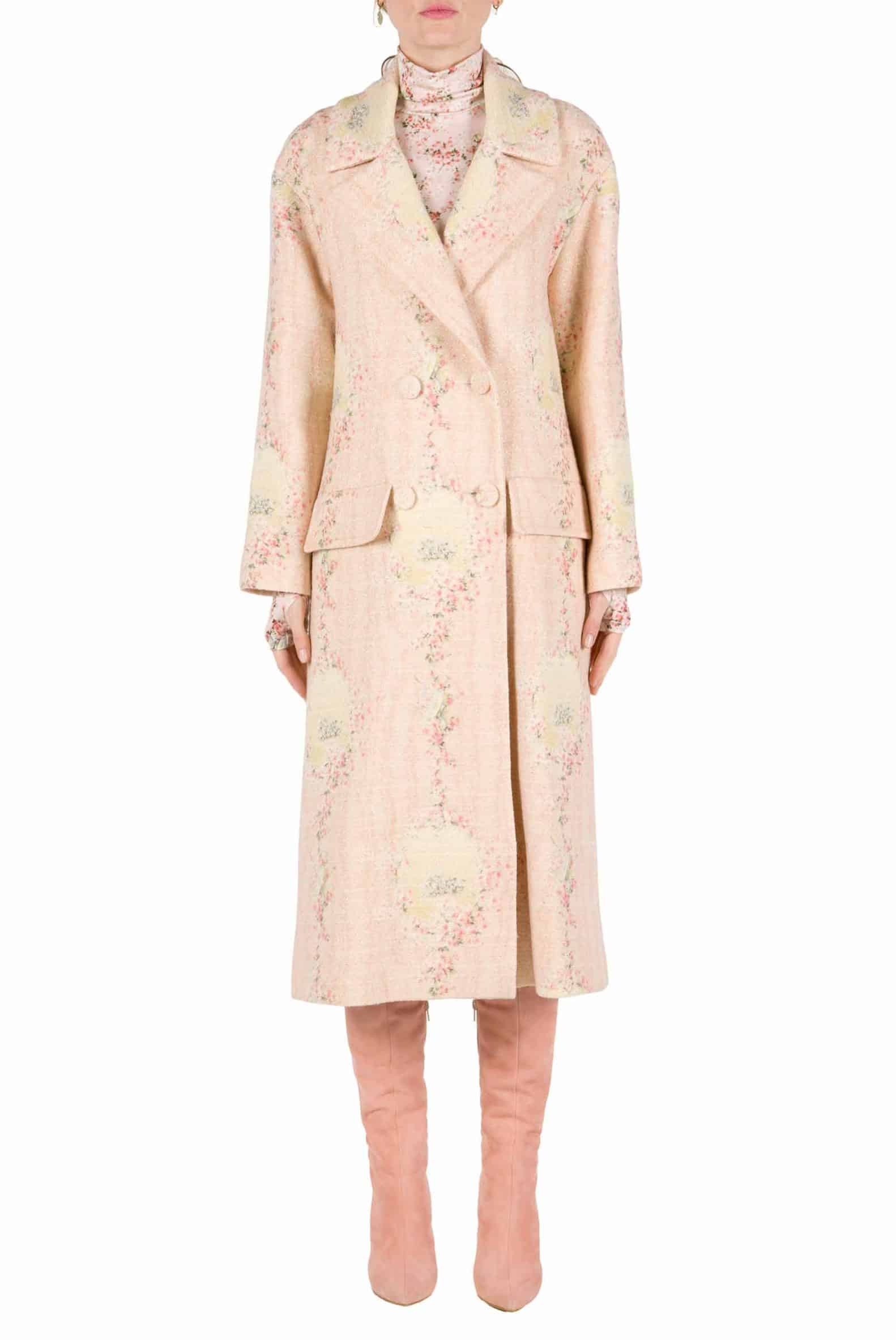 This coat is made with wool printed with flowery print. It’s fully lined and double breasted with a V neckline opening in the front and two pockets on the side. Product Details • Front V neckline opening • Match printed lining. • Double-breast • Two pockets ● Midi Length •…