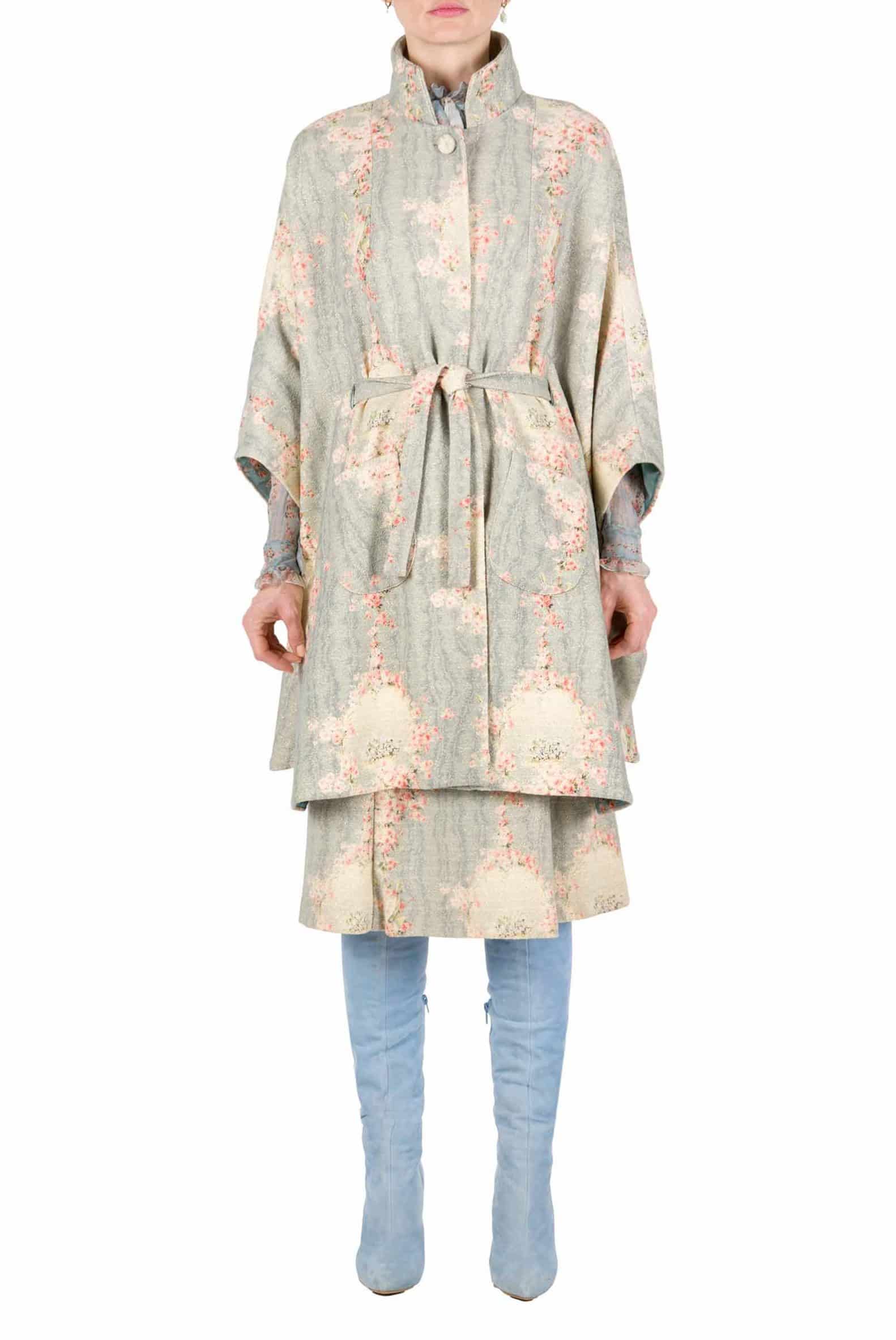 This cape is realised with wool printed. It has a V neckline opening in the front and a wool printed belt for a more neat silhouette. The lining is printed as well in satin. Product Details • Front V neckline opening • Composition: Main fabric 80% WV 20%PA,LINING 100%PL •…