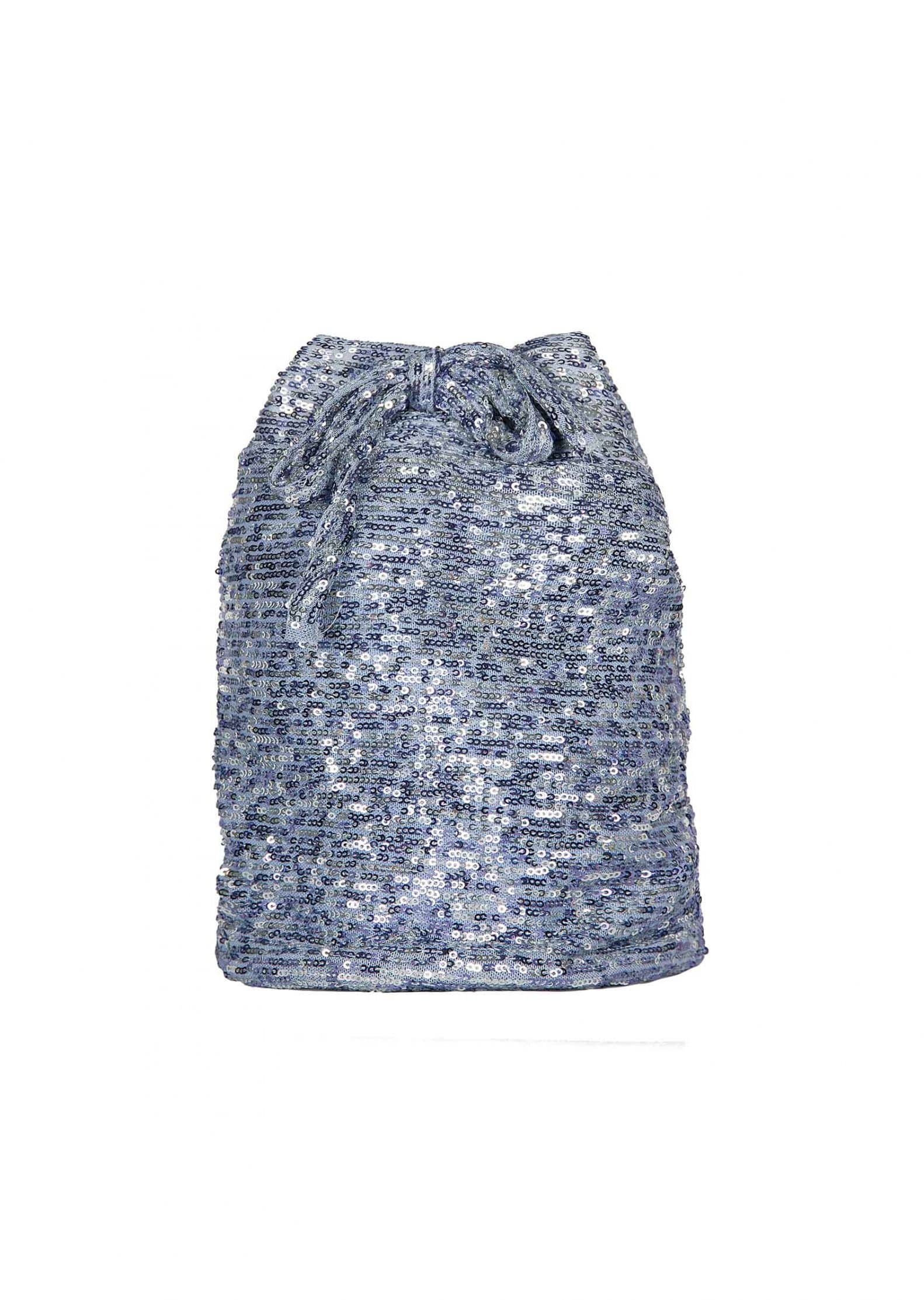 This shining bucket bag is made with sequin embroidered fabric. With drawstrings of the same color, this bag creates a party mood wherever you go. Product Details • Sequins embroidered tulle • Composition: • Dry Clean Only • Made in Italy