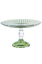 This glass cake stand is crafted in a vibrant green.