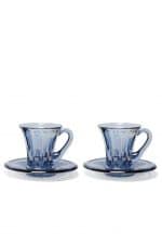 This set of two coffee cups is crafted in a vibrant shade of blue.