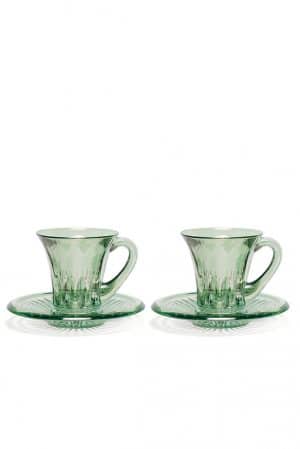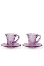 This set of two coffee cups is crafted in a vibrant shade of purple.