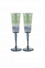 This set of two chalice flute glasses are crafted in vibrant shades, with iridescent gleam.
