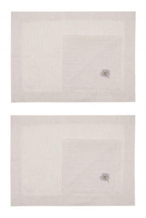 This set of two placemats and napkins is crafted of high-quality linen and has embroidered flowers.