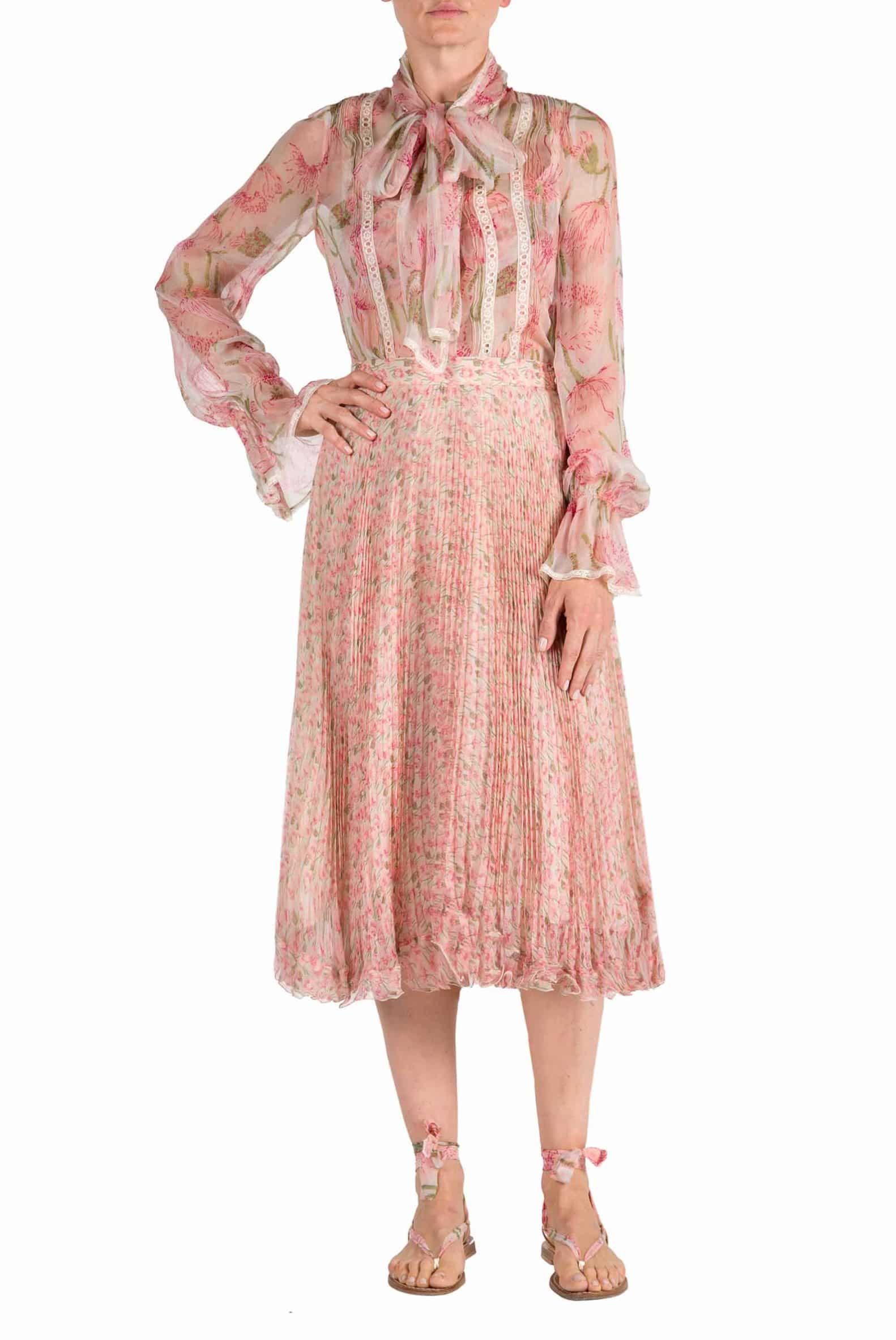 This blouse is crafted in micro poppies printed chiffon; it has a pussy bow in the neckline and an embroidered lace trimming detail. Product Details • Covered buttons in the front • Composition: 100% SILK • Dry Clean Only • Made in Italy