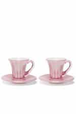 This set of two coffee cups is crafted in a vibrant shade of pink.