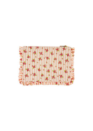 Small Hand Pochette Striped Roses Blue