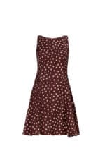 Charming and playful, this short burgundy dress features a classic polka dot pattern and a clean, sleeveless silhouette. Its flattering cut and vibrant print make it a perfect choice for daytime occasions, garden parties, or casual events or a winter wedding.