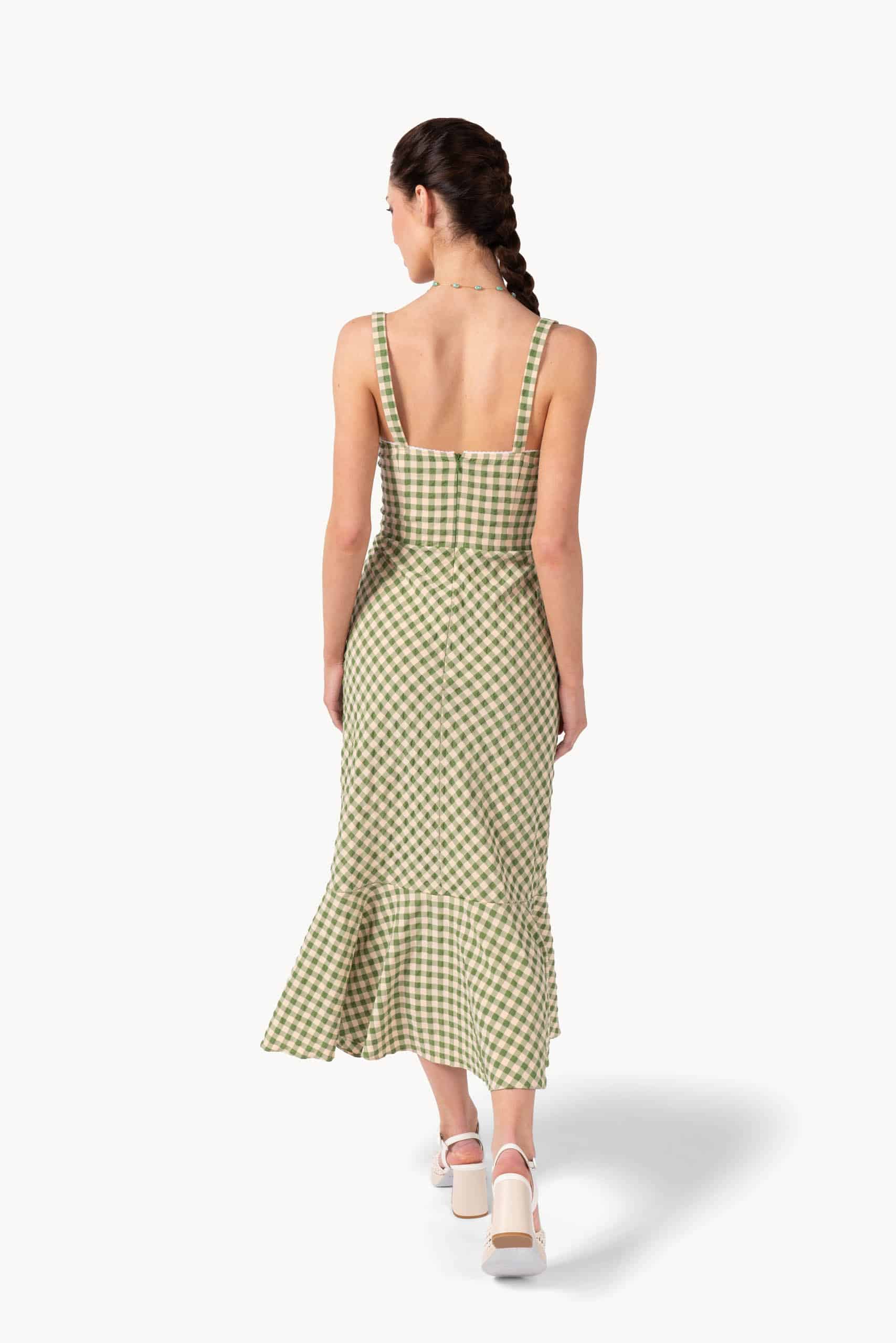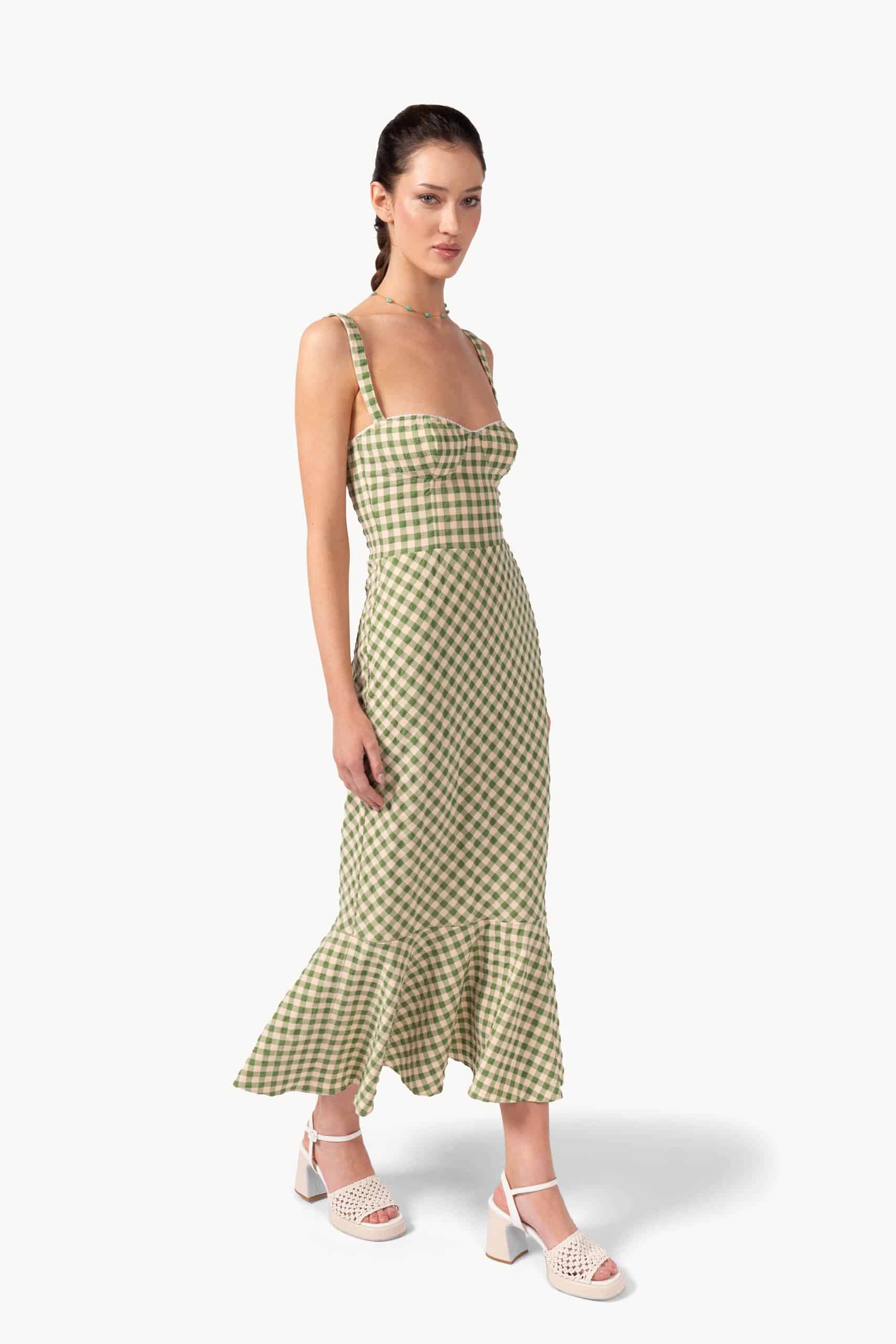 Light, feminine, and effortlessly stylish, this dress blends soft stretch cotton with a delicate checked pattern. The relaxed skirt and subtly cinched waist create a flattering silhouette, perfect for casual days or refined weekend looks.