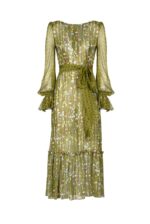 This dress is made from a mix of georgette and chiffon. With a flowy silhouette and voluminous sleeves, this dress is perfect to wear on a cocktail party. Wear it with boots or with a pair of glossy heels.