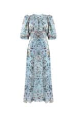 A stunning dress featuring iridescent printed sequins that shift from bronze to lilac, with a daring back neckline. The shimmering effect creates a captivating, fluid look, while the open back adds a touch of sultry elegance. Perfect for making a statement at any special event.
