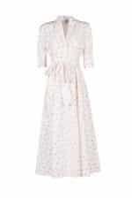 This cotton wrap dress is made with a lightweight cotton-poplin that’s playfully patterned with a ribbon motif. It has three-quarter-length sleeves and a tie-fastening sash to nip you in at your narrowest point. Highlight the plunging neckline by layering delicate chains.