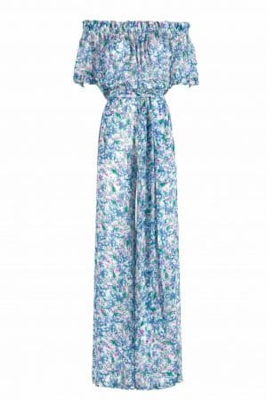 This jumpsuit is made from airy floral-print lace into a flattering off-the-shoulder silhouette that’s ruched for comfortable day-long wear.