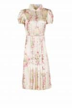 This dress is crafted from pleated satin stretch. It has zipper closure on the side and the skirt is filled with pleats.