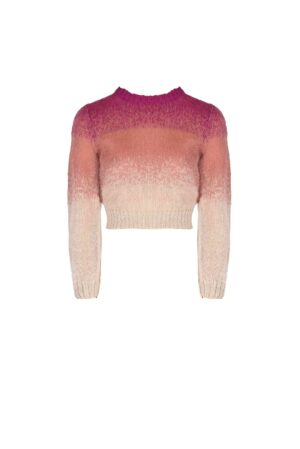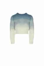 This sweather is made in super soft mohair. It is shaded in different blues. Round neck and long sleeves. Combine it with sequin skirt for a modern romantic look.