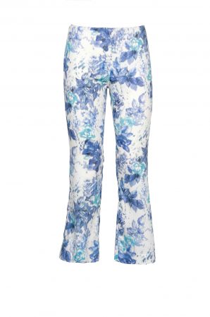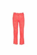 These flared Capri pants are made from San Gallo floral lace. They have low waist and zip fastening closure on the side. You can wear it with our matching top and shirt. The strap is enriched with a 3D lace embellishment. The lower part of the trouser leg follows the pattern of the fabric. Wear it paired with its corresponding top and shirt (sold separately) for a vibrant summer look, perfect for a vacation or a day by the pool.