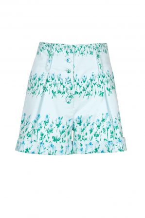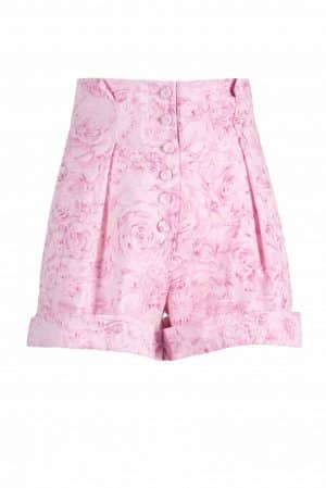 These high-waisted bermuda shorts are designed in Striped Roses jaquard stretch cotton. They have covered buttons, front pleats and folded hem detail. You can wear it with our matching blouse and blet (sold sepratley). Perfect for a day at the beach or a pool party.