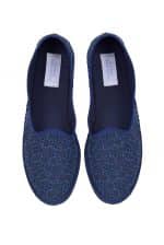 Hand made slippers with rubber sole and printed eyelet cotton.