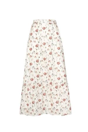 This wide ankle skirt is crafted from San Gallo floral lace. It features a waistband and a large ruffled flounce under the knee. The skirt is enriched by a 3D floral lace embellishment on the strap and along the flounce. Wear it paired with its corresponding top (sold separately) for a candid summer look, perfect for a vacation or a day by the pool.