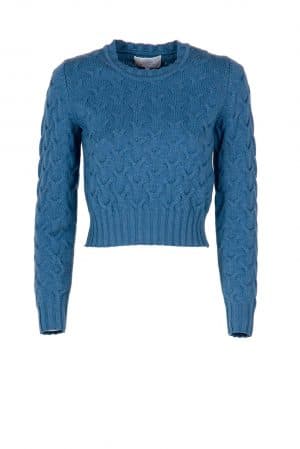 This elegant sweater features a classic cable knit texture, creating a rich, tactile pattern that adds depth and timeless charm. Combining comfort and style, it’s a perfect piece for a cozy yet sophisticated look.