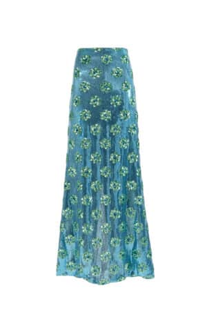 A white lace skirt with a straight silhouette, featuring a delicate perforated effect created by the ifloral lace pattern. Its clean lines and elegant design offer a sophisticated, yet airy look, making it the perfect match for the coordinating cape. A timeless piece that combines femininity with a modern, refined touch.