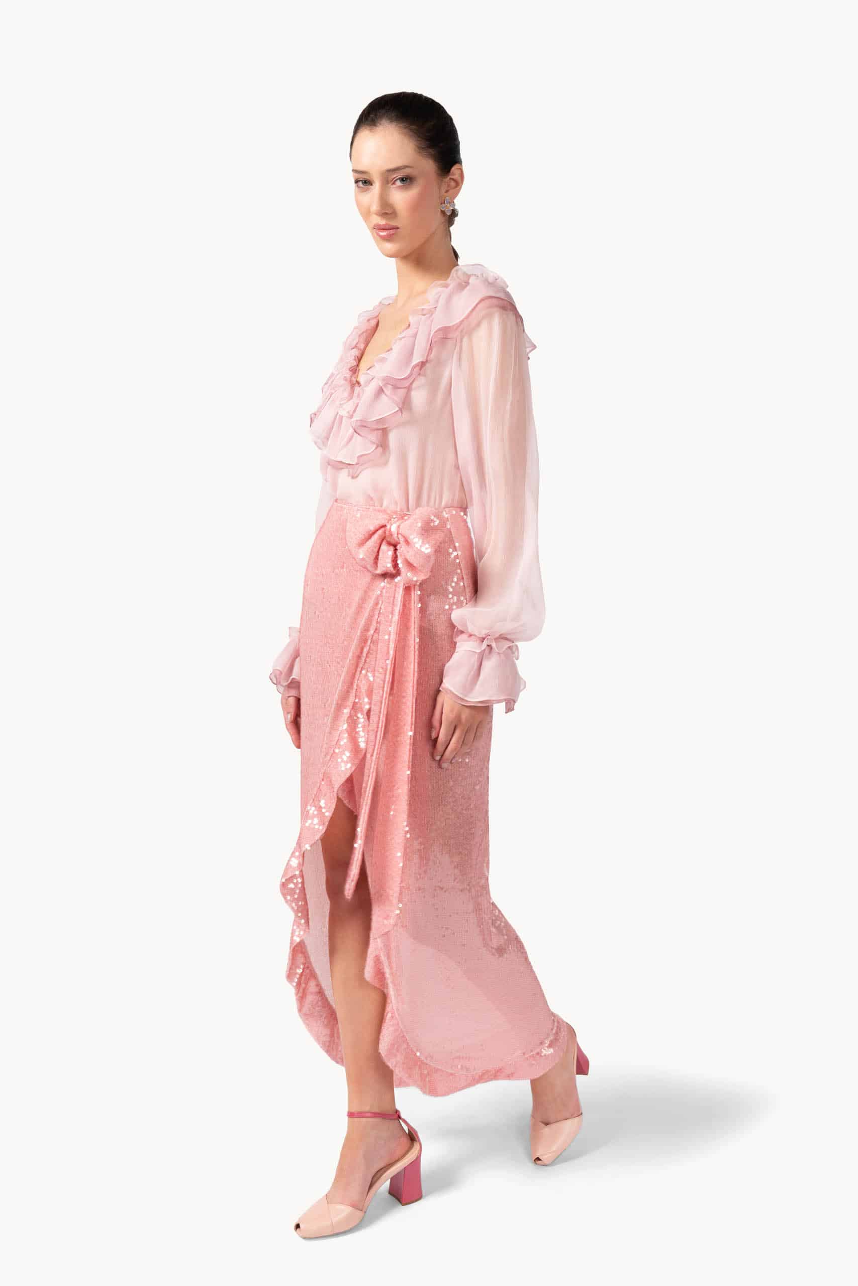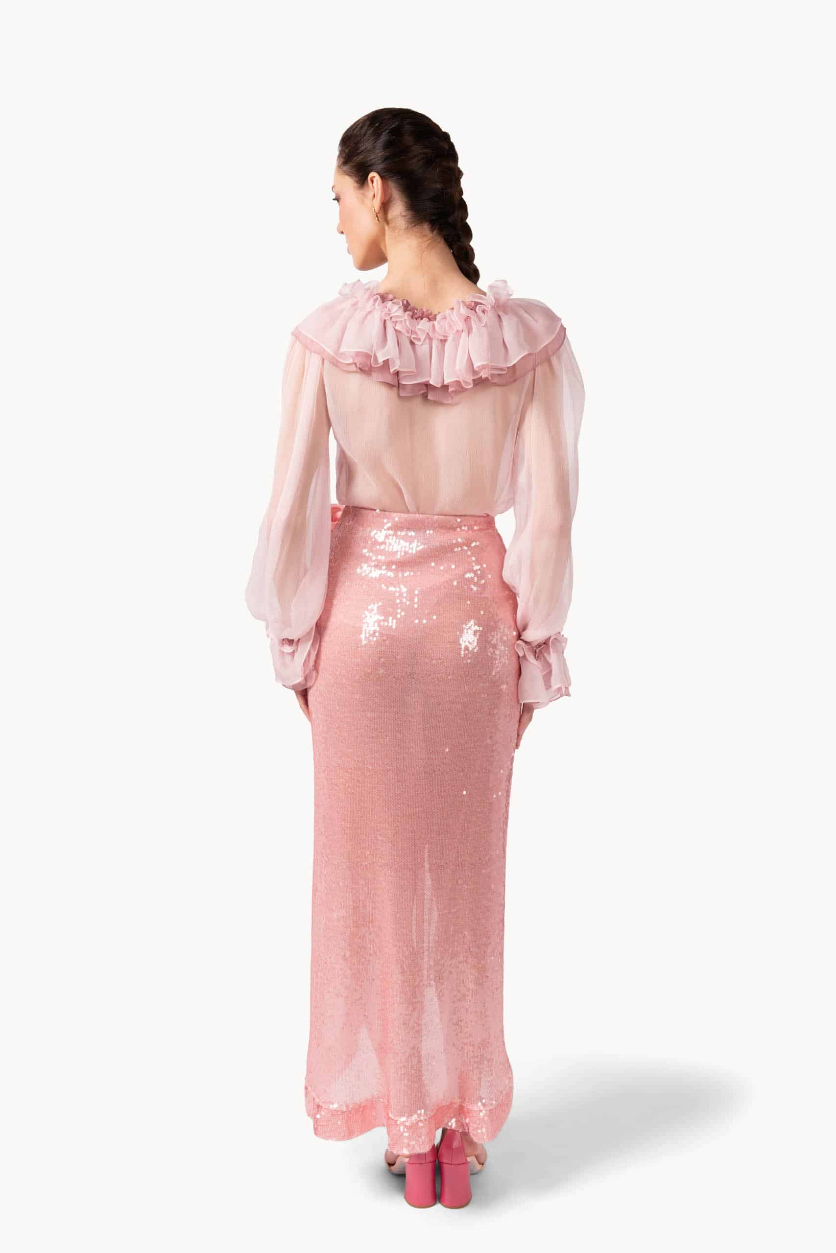 Shimmering sequins cover this midi-length skirt, creating eye-catching texture and light-catching movement. The tailored waist ensures a polished fit, making it ideal for formal occasions, receptions, or stylish evening ensembles.Product Details