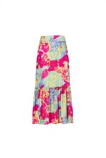 This midi skirt is crafted from cotton printed with Abstract Flowers. It features a waistband and a large ruffled flounce at knee height. Wear it paired with its corresponding top (sold separately) for a vibrant summer look, perfect for a vacation or a day by the pool.