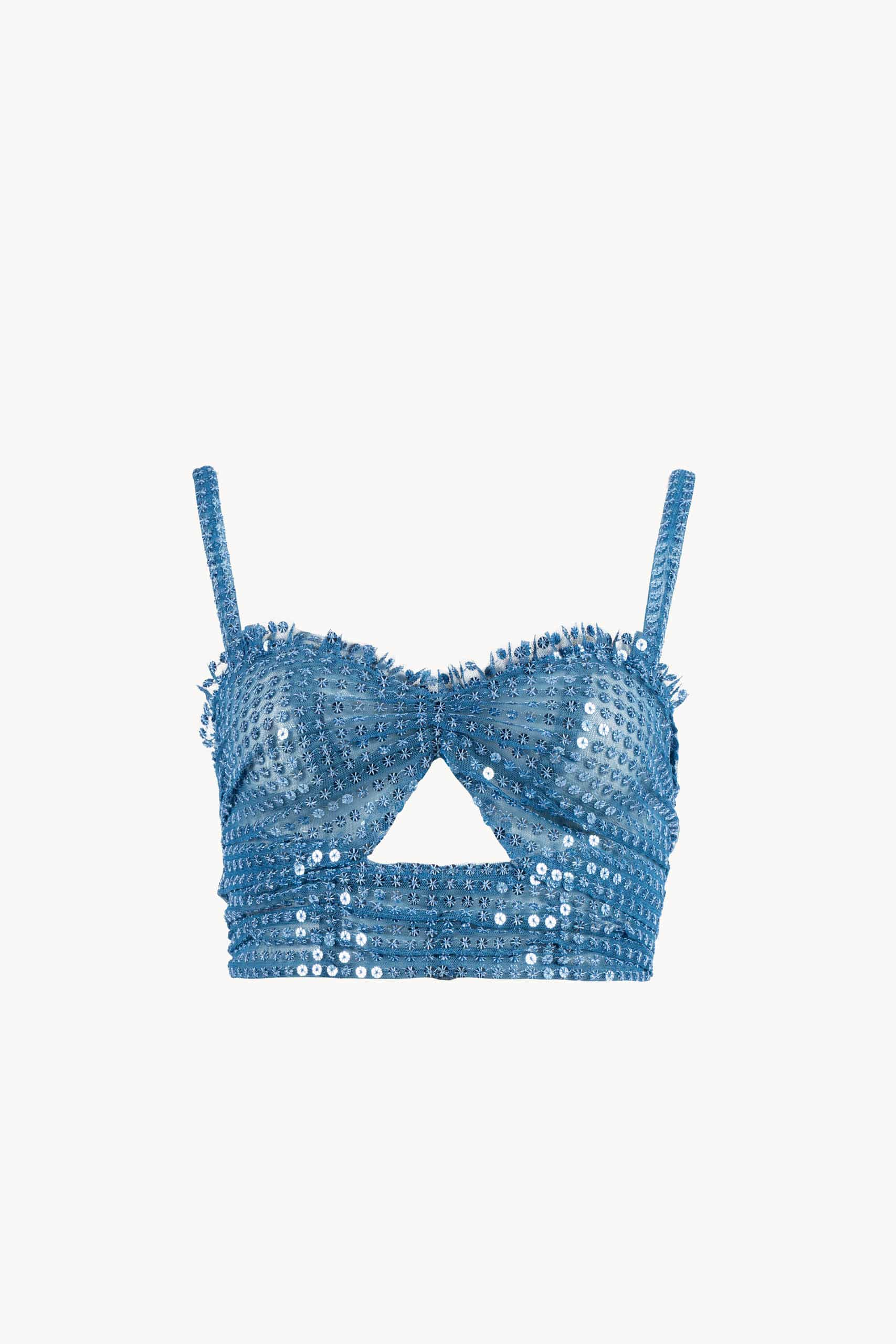 Delicate tulle is adorned with sparkling sequins, creating a luminous top that feels like it was made for memorable nights. Light and airy yet striking, it elevates any outfit with refined elegance and effortless charm. Product Details • Dry Clean Only • Made in Italy