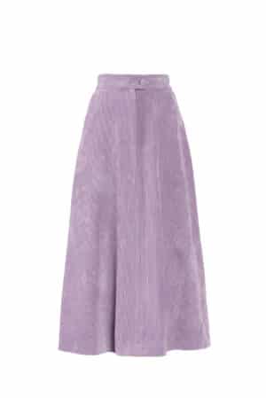Velvet corduroy skirt with a printed lining featuring wild cream roses,