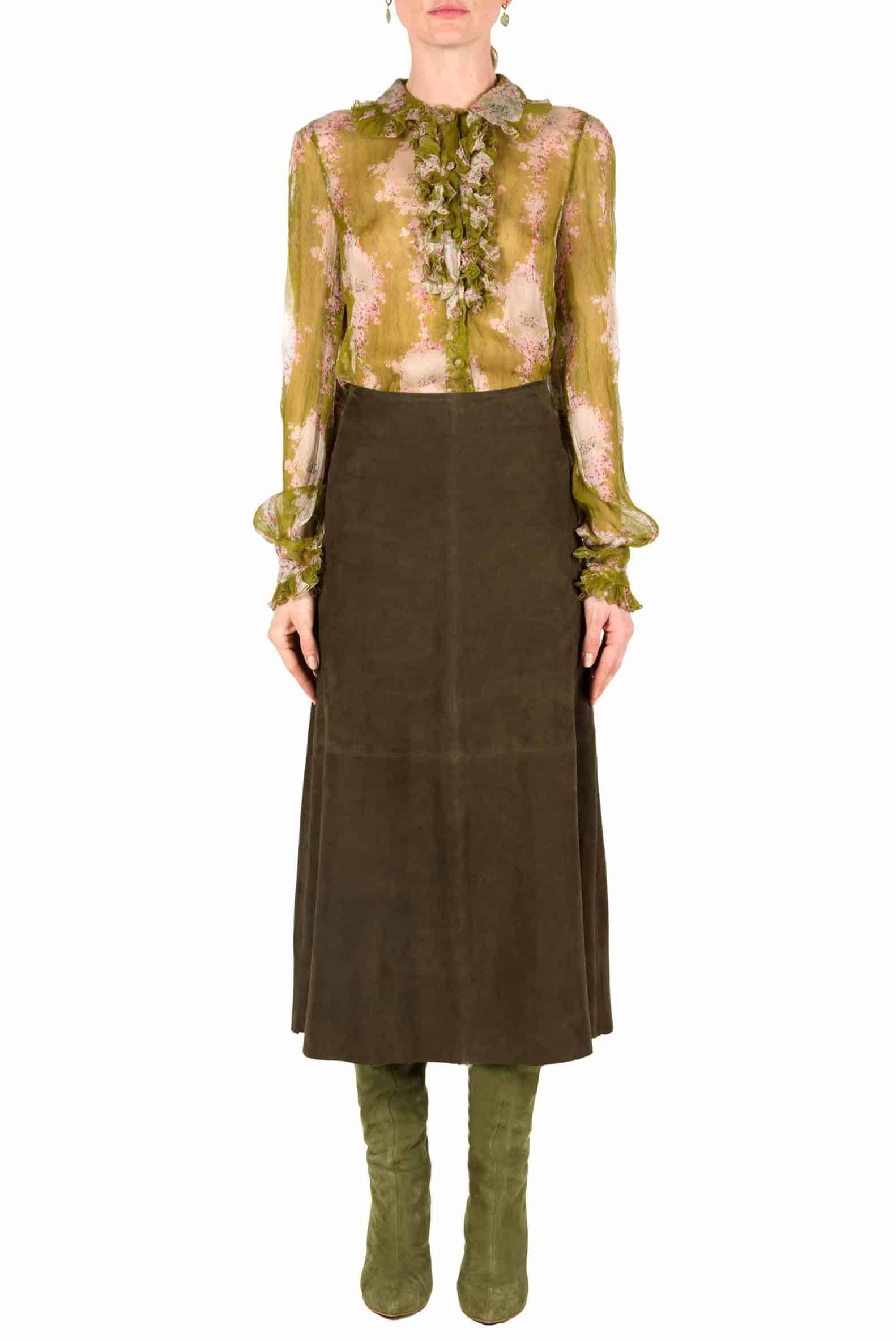 This printed midi skirt is cut from printed wool.This high-waisted style falls just below the knee in an a-line silhouette. You can wear it with our matchy redingote coat.