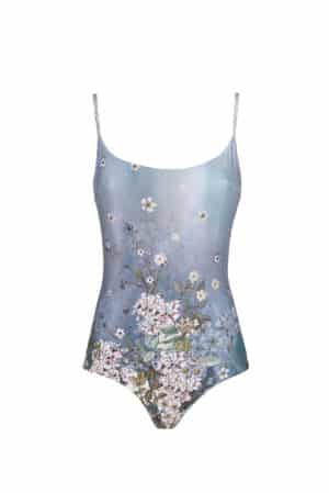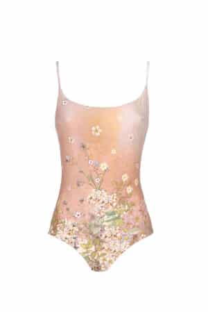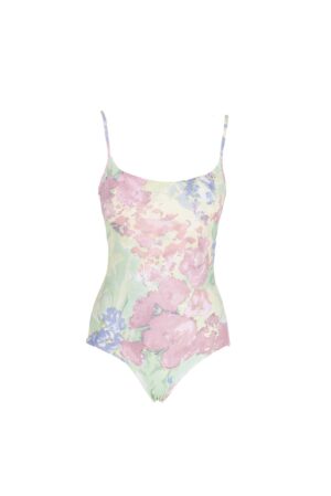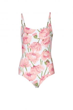 This one-piece bathing suit is designed in pink Flowery striped printed lycra. It has a round neckline and an open back. It has slim fit and you can wear it matching with our pareo in the same print.