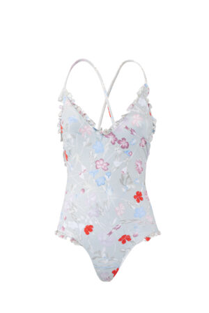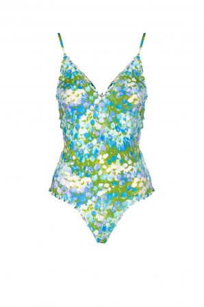 Our one-piece swimming suit is decorated with the Monet print inspired by movements and reflections on the water. It’s cut from printed lycra and has adjustable ties. Wear yours with a printed hat at the beach or throw on a matching pareo.