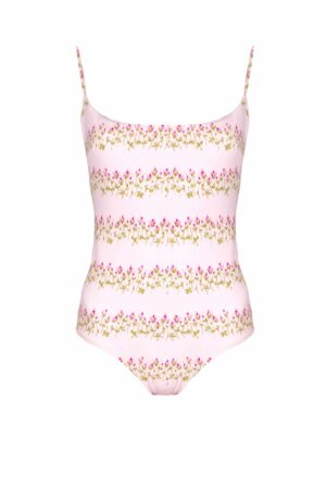 This one-piece bathing suit is designed in Blooming Roses printed lycra. It has a round neckline and an open back. It’s slim fit, reversible and you can wear it matching with our pareo in the same print.