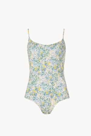 This one-pice bathing suits is designed in poppies printed lycra. It has round neckline and open back. It’s slimfit, reversible and you can wear it matching our pareo in the same print.