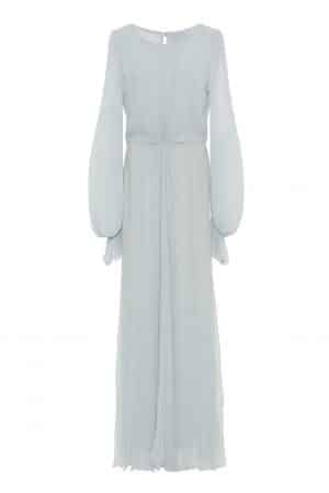 This shirt is realised with printed chiffon crepon. It has round collar neck and covered buttons in the front with rouches. It comes with a camisole in solid color.