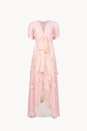 This shirt is realised with printed chiffon crepon. It has round collar neck and covered buttons in the front with rouches. It comes with a camisole in solid color.