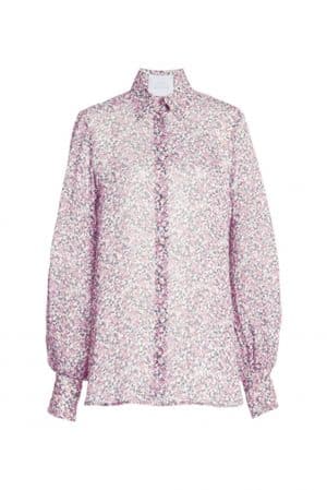 This blouse is made in printed silk chiffon with a pointed collar that matches the cuffs and it is fastened with buttons in the front.