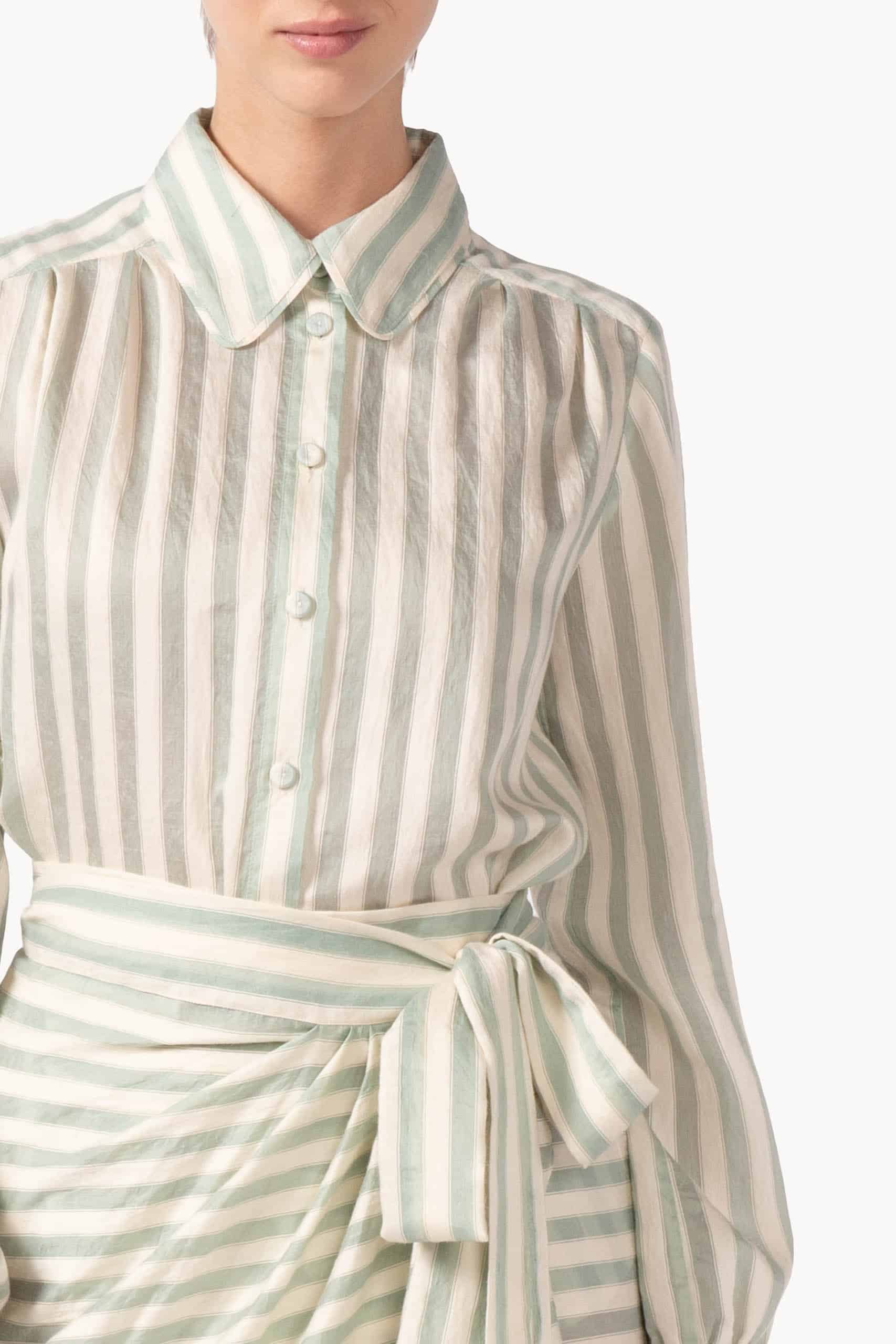 Crafted with a soft, romantic sensibility, this piece combines gentle structure with refined texture. The woven stripes create delicate dimension, while the fluid silhouette brings an effortless elegance that transitions beautifully from day to evening.