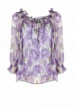 This long sleeves slip blouse is made with macro poppies printed chiffon and can be worn either over the shoulders or left down.