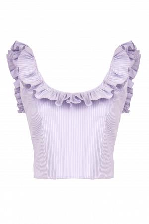 Polka dots cotton sleeveless top is designed with ruffle detailing around the neck, and honeycomb on the back
