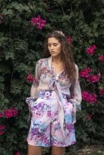 This printed blouse is design for a relax fit. It has a tie bow in the front.
