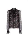 This romantic shirt is made from chiffon crepone with a floral print. With ruffles around the collar and on the opening, it’s perfect to add a touch of softness to the look. Wear it with a suede mini skirt or with a pair of wide jeans.