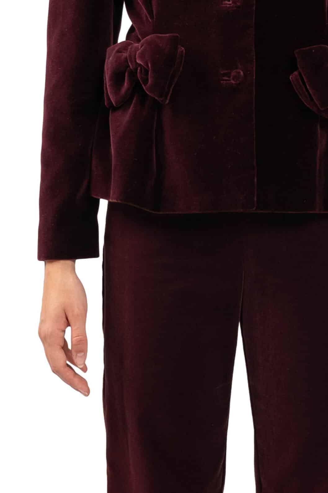 These elegant burgundy velvet trousers feature a classic straight-leg cut that offers a flattering and timeless silhouette. The rich velvet fabric adds depth and a luxurious touch, making them perfect for both casual and dressier occasions. Ideal to pair with its matching velvet jacket for a chic and coordinated suit look.