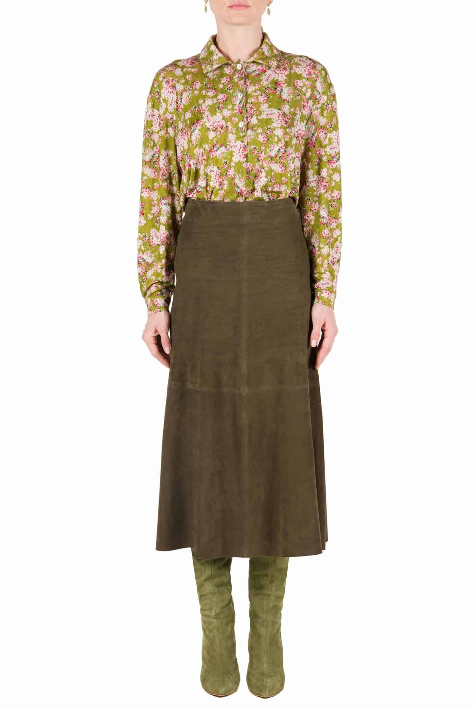 This printed midi skirt is cut from printed wool.This high-waisted style falls just below the knee in an a-line silhouette. You can wear it with our matchy redingote coat. Product Details • High-waisted • A-line silhouette • Zip closure in the back • Composition: Main fabric 80% WV 20%PA, LINING…