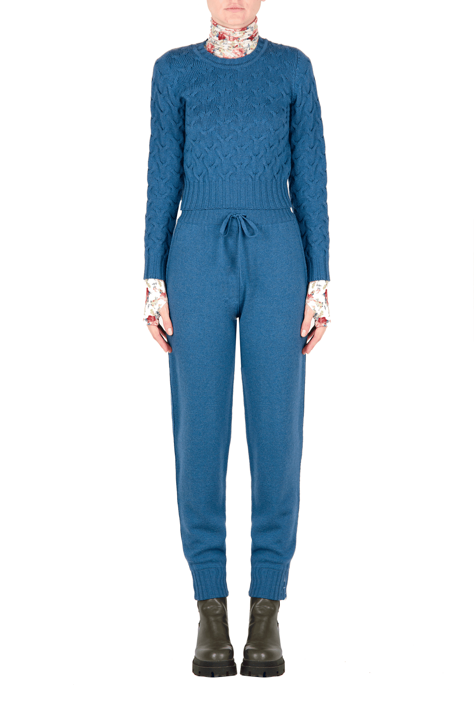A round collar jumper in wool that can be worn as an elegant jogging set with matching its pants. Product Details • Composition: 100%WO • Dry clean only • Made in Italy