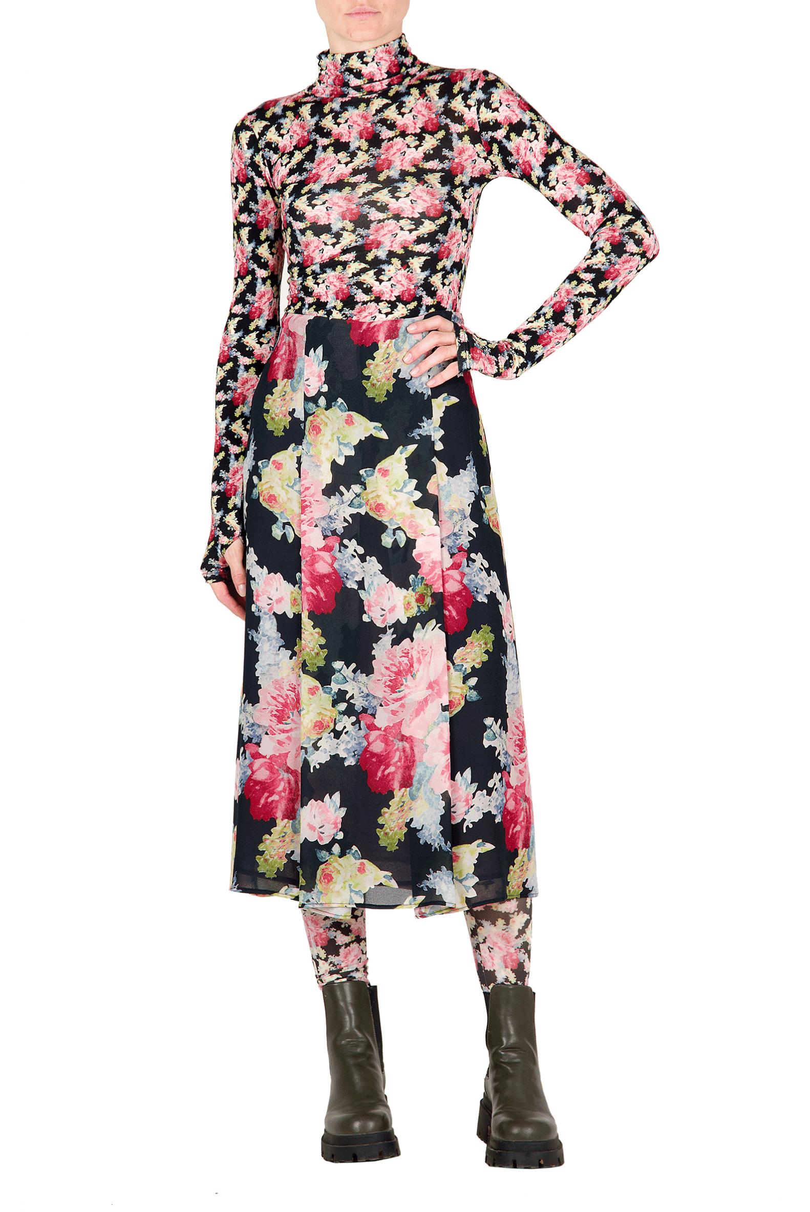 Floral devoré velvet dress, cut on bias for a confortable fit, tight long sleeves and high neck. Product Details • Composition: 96%VI, 4%EA • Dry clean only • Made in Italy